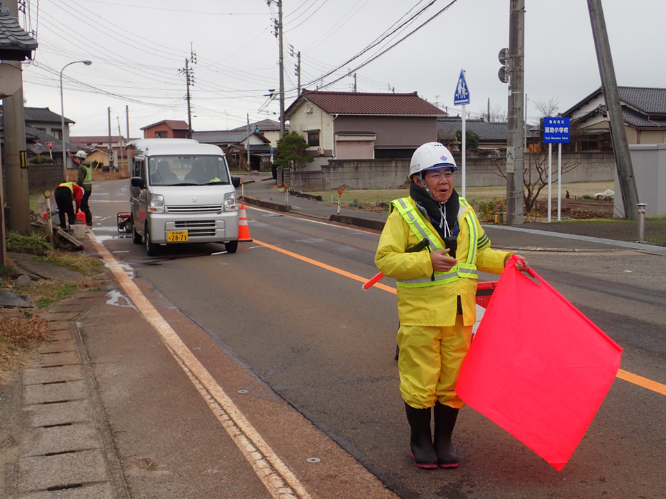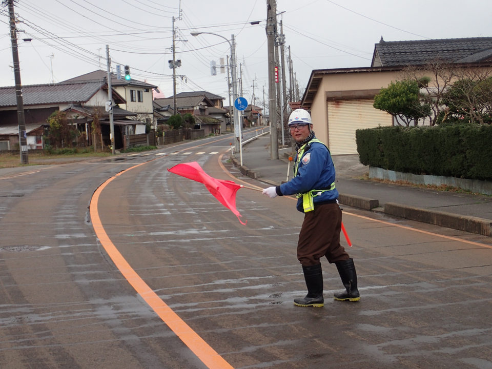 無線機でのやりとりもスムーズに行えています。背筋をピンと伸ばして自信満々で交通誘導をする姿は素晴らしいですね!
