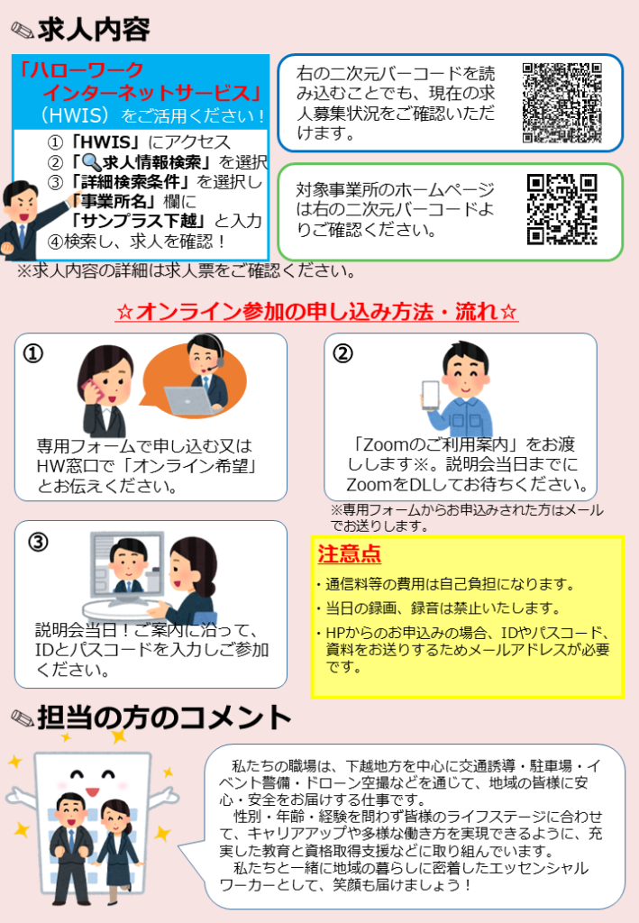 当日、ハローワークにお越し頂けない方は、オンラインでも参加できます。下記のリーフレットをご参考にお申込みください。