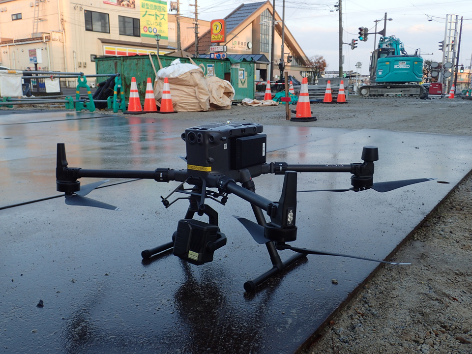 工事現場(写真下)では、地面が整地されていないところもありますが、鉄板が敷いてあると地盤が安定した離発着場を確保できるので安心です。