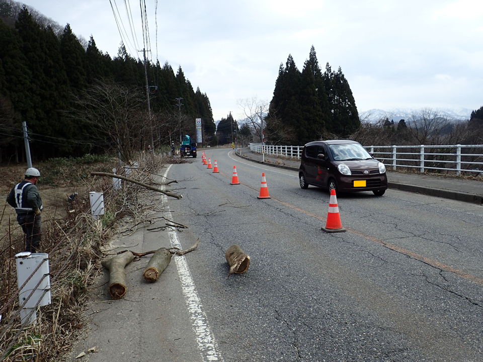立木の伐採に伴う片側交互通行も無事に終了しました。