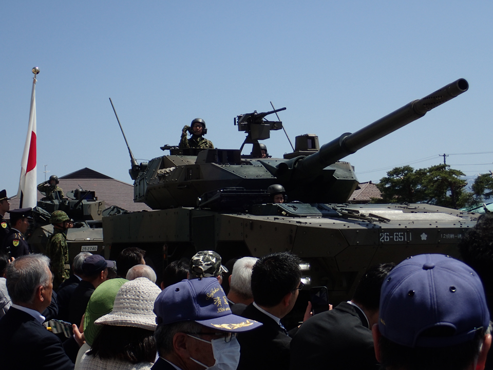 さて、記念行事は、記念式典に始まり、第12音楽隊の演奏、新発田中央高校ブラスバンド演奏、戦闘訓練展示、体験試乗や装備品展示など盛りだくさん準備されていて、なかでも記念式典の締めくくりに行われた観閲行進は、厳粛な雰囲気の中に威風堂々と更新する部隊の姿が印象的でした。