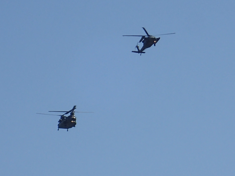 (写真下)第12旅団隷下部隊の第12ヘリコプター隊(相馬ヶ原駐屯地)が装備するUH-60(多用途ヘリコプター)とCH-47(輸送ヘリコプター)です。